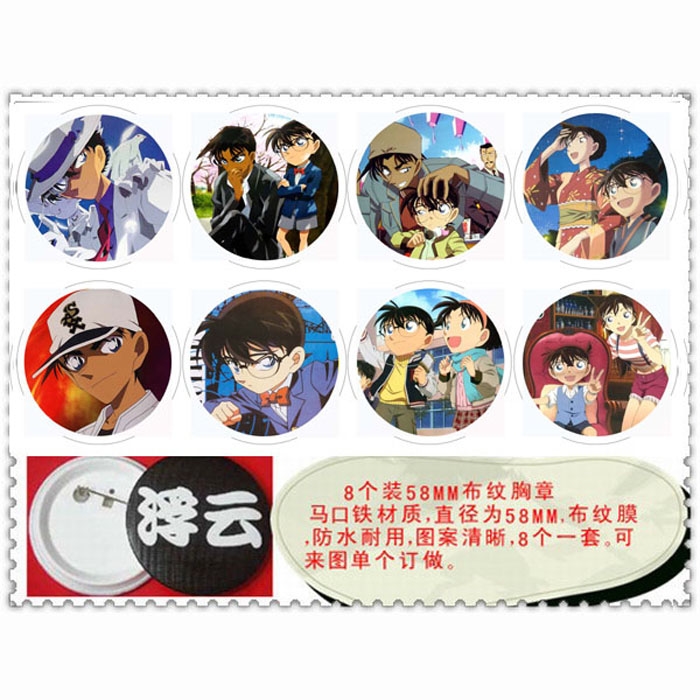 名侦探柯南 多人8款一套58MM圆形布纹胸针