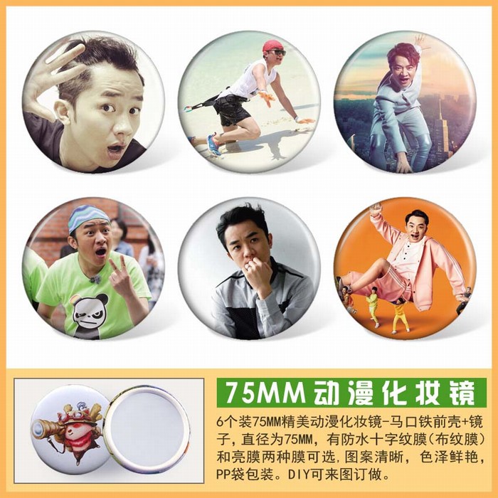 奔跑吧兄弟王祖蓝6款一套金属圈圆形镜子75MM
