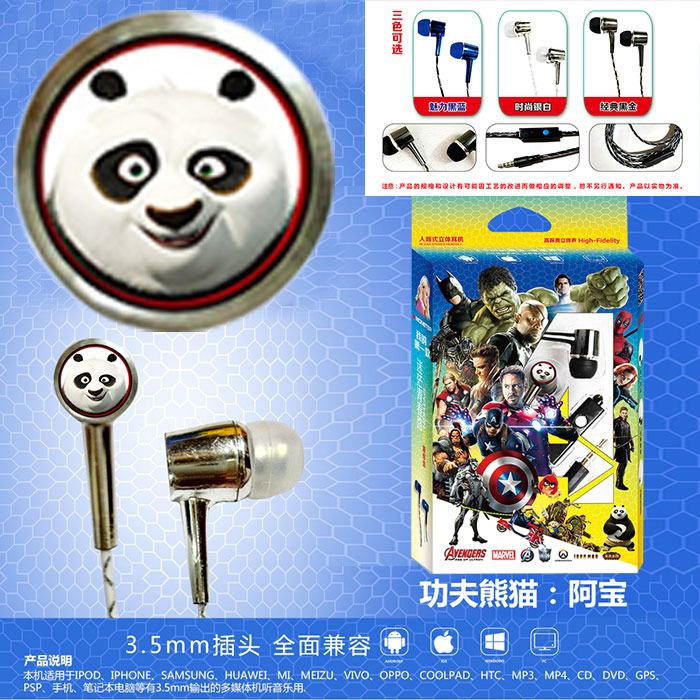 功夫熊猫:阿宝蛇皮带唛入耳式耳机5个起批