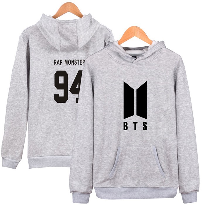 BTS2017新专辑LOGO标志灰色长袖加绒抓绒料带帽子头套卫衣RAP-MONSTER-2件起批-M--L--XL--XXL--XXXL