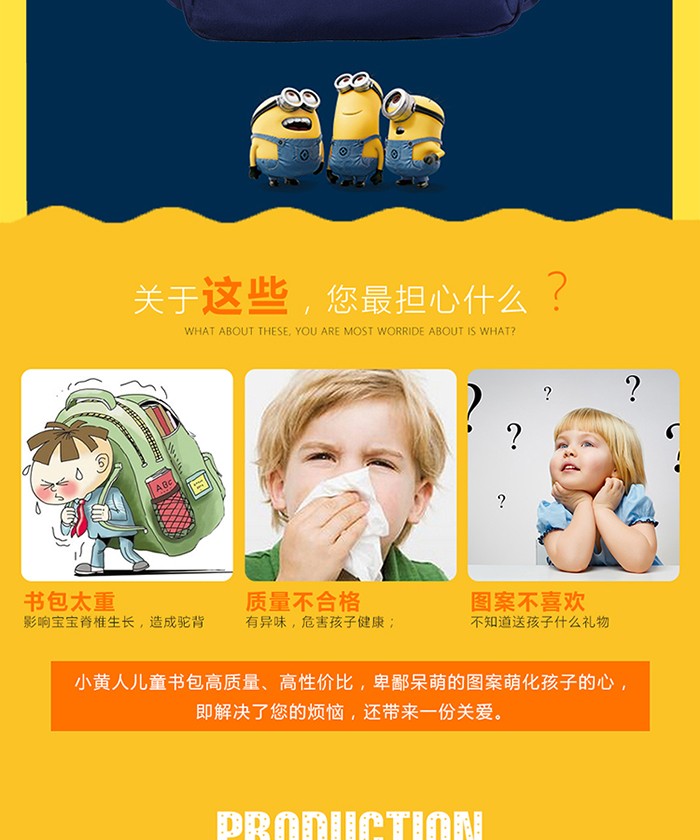 正版神偷奶爸小黄人大眼休闲书包(蓝色)双肩背包NO-XHR61112A (26X11X39CM)