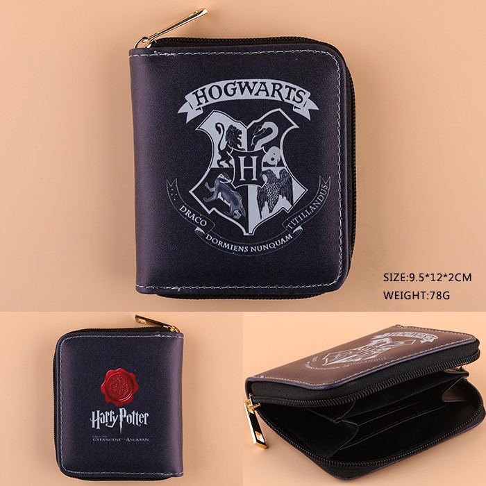 哈利波特霍格华兹PU皮革彩色拉链短钱包