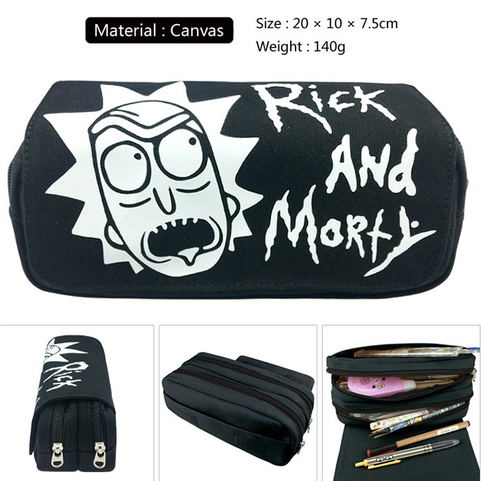 瑞克与莫蒂-瑞克帆布多功能双层拉链翻盖钱包笔袋