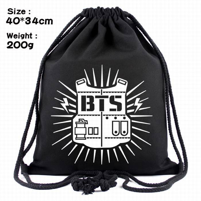 BTS防弹少年团图文标志丝印帆布束口背包