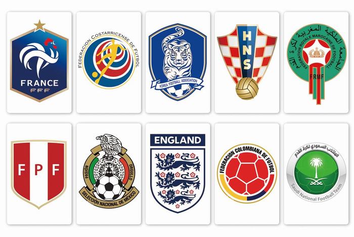 2018年世界杯队标一套10个装磨砂卡贴5套起批 C款
