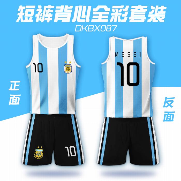 087-2018俄罗斯世界杯阿根廷国家队球衣网眼布短裤背心套装一套出S M L XL XXL