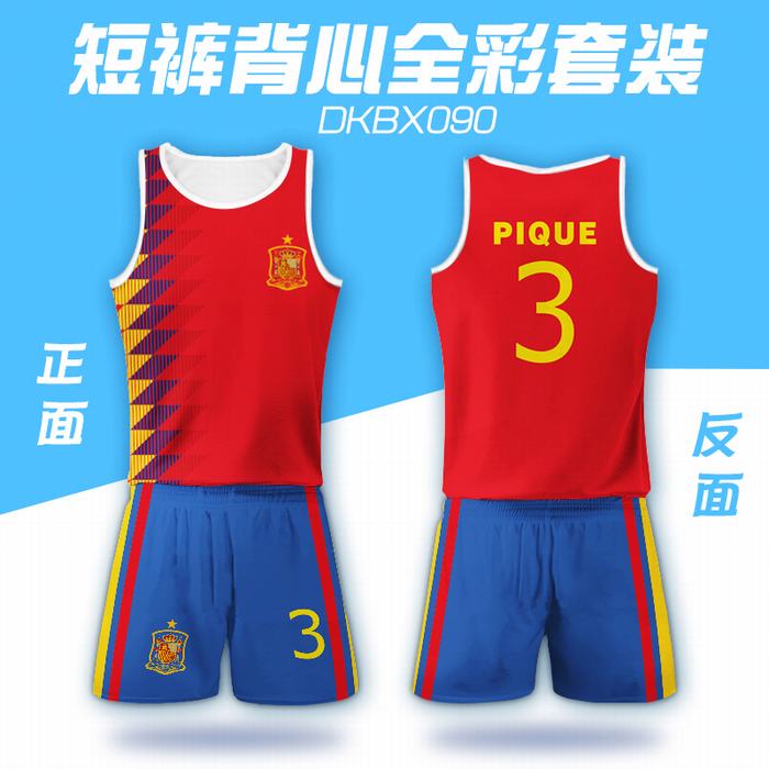 090-2018俄罗斯世界杯西班牙国家队球衣网眼布短裤背心套装一套出S M L XL XXL