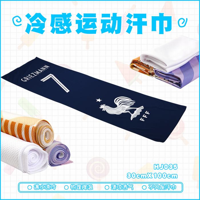 HJ035-2018俄罗斯世界杯法国国家队冷感运动毛巾30X100CM