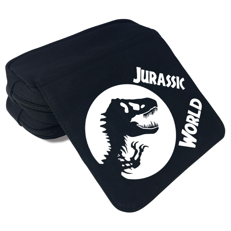 侏罗纪世界帆布多功能双层拉链翻盖钱包笔袋