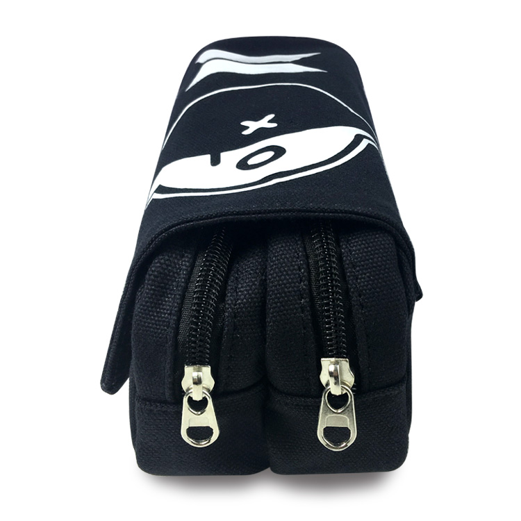 BTS防弹少年团黑白机器人帆布多功能双层拉链翻盖钱包笔袋