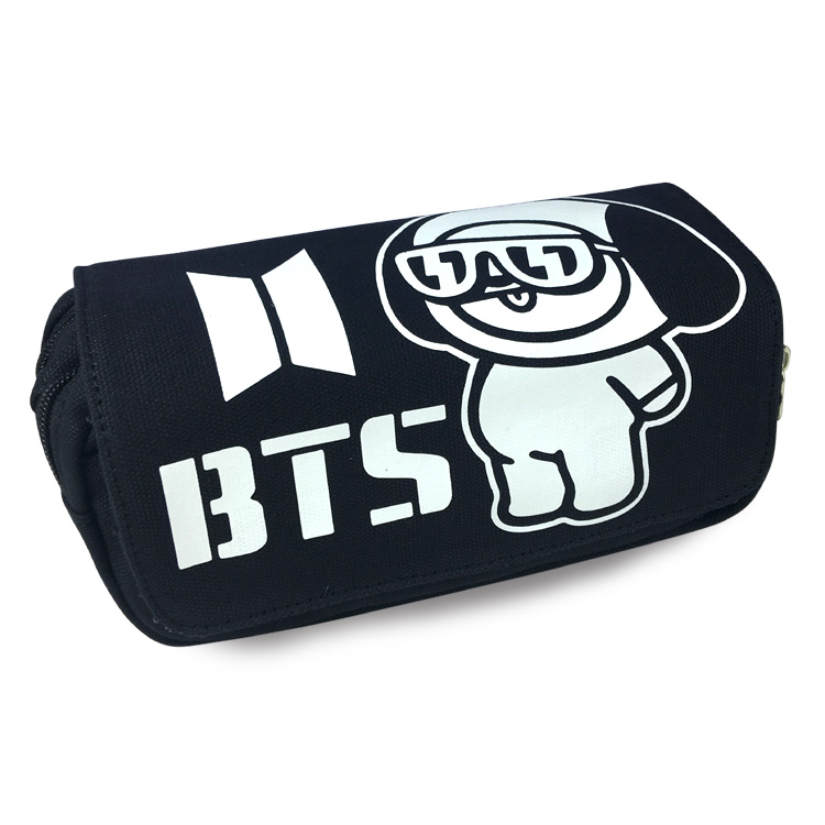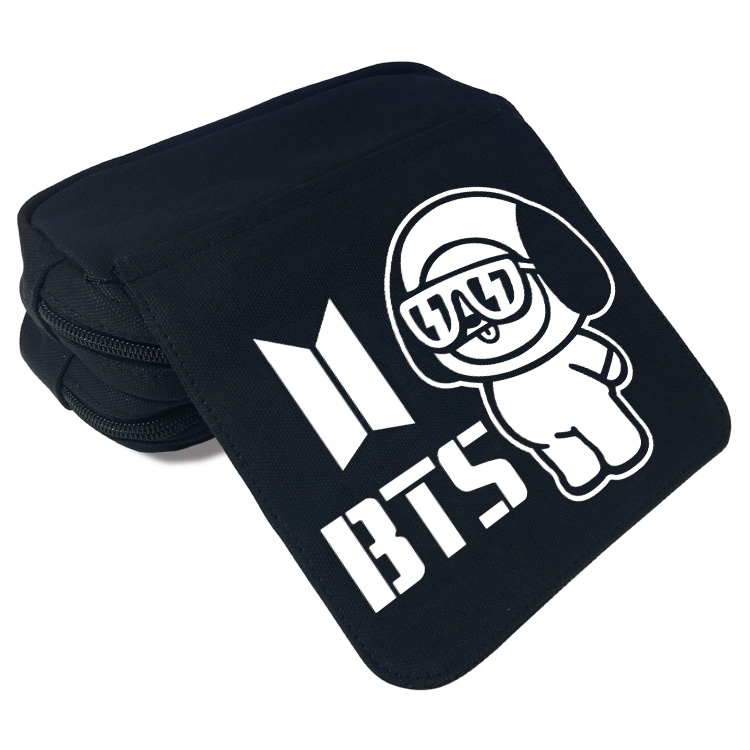 BTS防弹少年团小狗帆布多功能双层拉链翻盖钱包笔袋