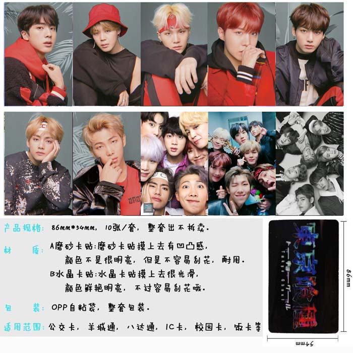 防弹少年团BTS10个装磨砂卡贴 五套起批