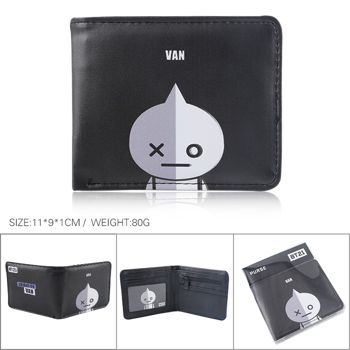 BTS 防弹少年团 BT21卡通B款全彩印花短款钱包 11X9X1CM 80G