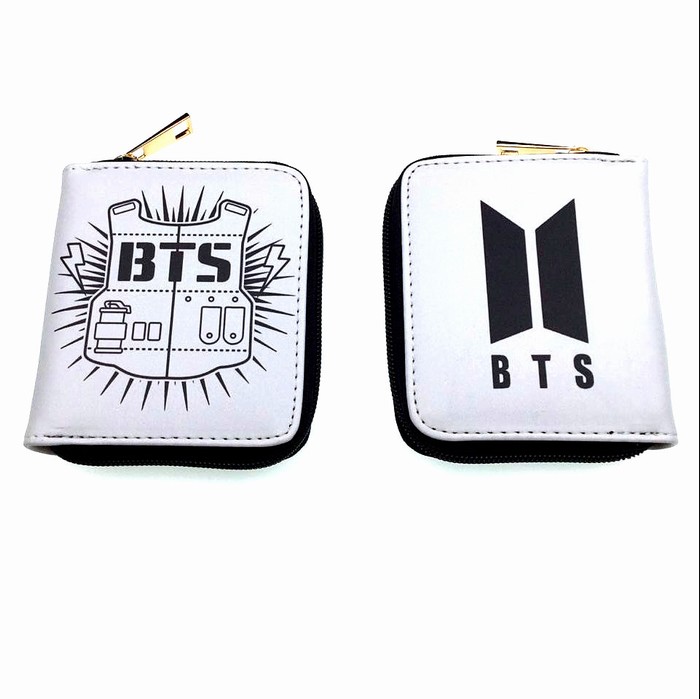 BTS-防弹少年团 白色 PU斜纹二折短款钱包拉链款