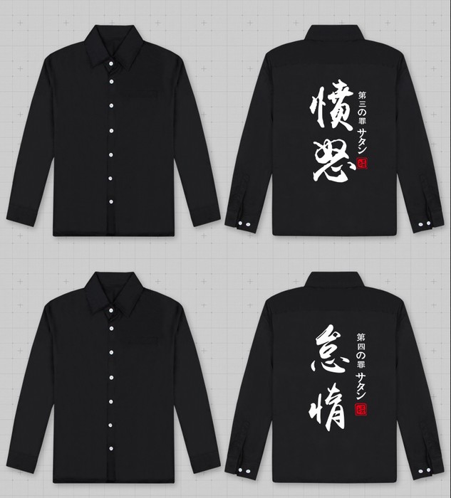 七宗罪 黑色愤怒 流行时尚长袖衬衫M L XL XXL