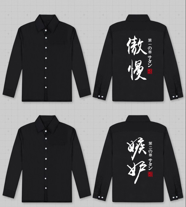 七宗罪 卡其色嫉妒 流行时尚长袖衬衫M L XL XXL
