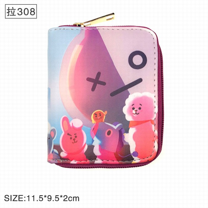 BTS 防弹少年团BT21拉308 PU斜纹二折短款钱包拉链款