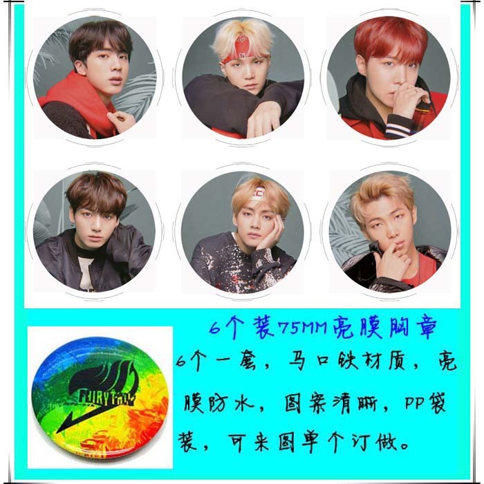 BTS 防弹少年团 D款6个装75mm亮膜徽章