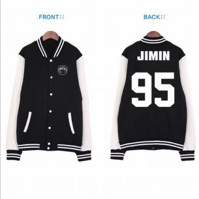 BTS 防弹少年团 jimin 单排扣拼接印花抓绒棉质 长袖棒球服外套 S M L XL XXL 提前3天预订