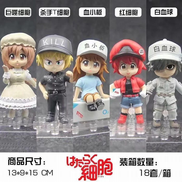 工作细胞 Q版5款一套盒装手办摆件模型 13X9X15CM 一箱18套