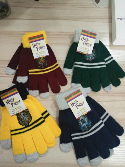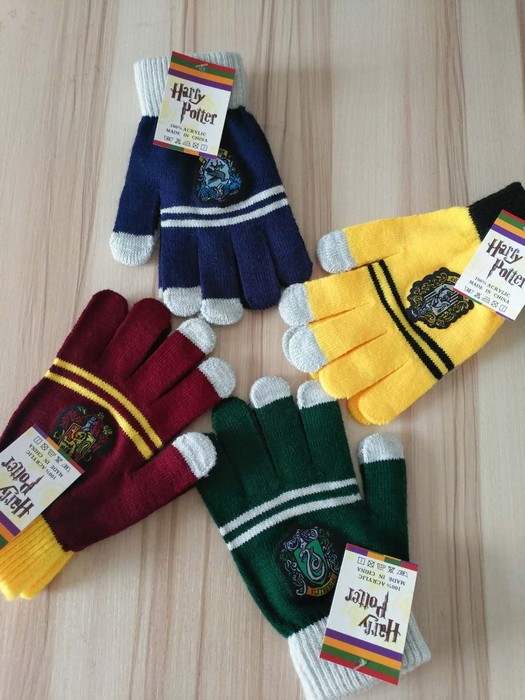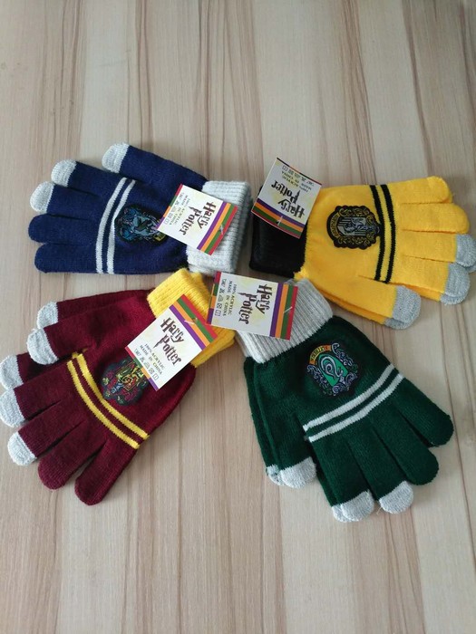 哈利波特赫奇帕奇学院黄色 针织保暖全指触屏手套 5双起批