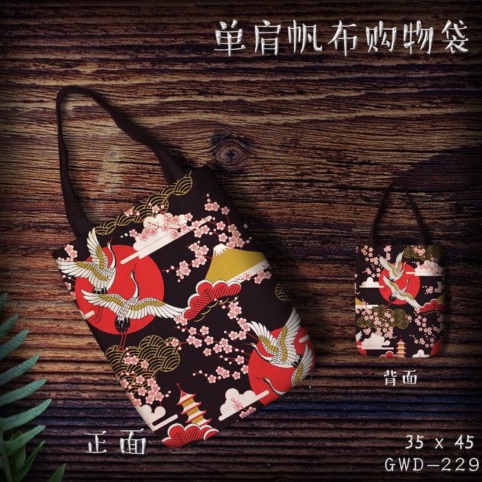 GWD229-仙鹤 个性单肩帆布购物袋 35X45CM