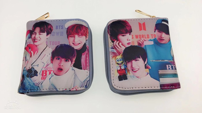 BTS 防弹少年团 三人图案款 PU斜纹二折短款钱包拉链款