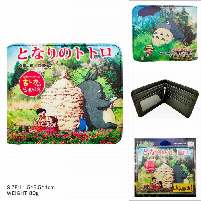 HK-195-龙猫-30周年上映纪念 短款彩图二折钱包11.5X9.5X1CM 80G