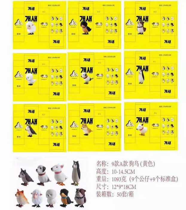 狗鸟 有款式图案包装 9款A款 黄色盒装手办摆件模型公仔10-14.5CM 12X9X18CM 一箱50套