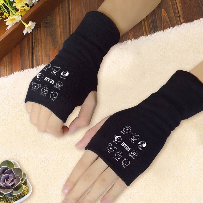 BTS 防弹少年团 BT21 黑色印花半指手套 磨砂袋包装