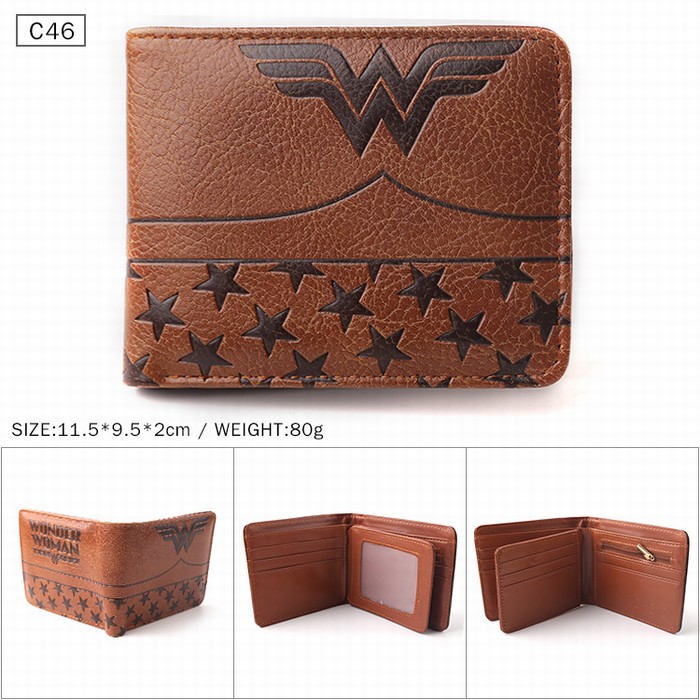 神奇女侠 棕色C46 对折压纹短款皮钱包 11.5X9.5X2CM 80G
