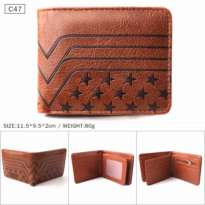 神奇女侠 棕色C47 对折压纹短款皮钱包 11.5X9.5X2CM 80G