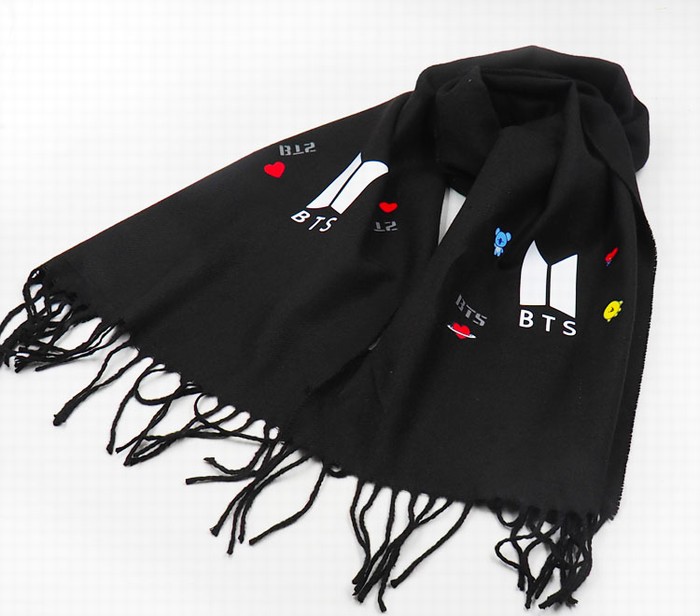 BLW0-1 BTS 防弹少年团 BT21标志款黑色印花保暖围巾