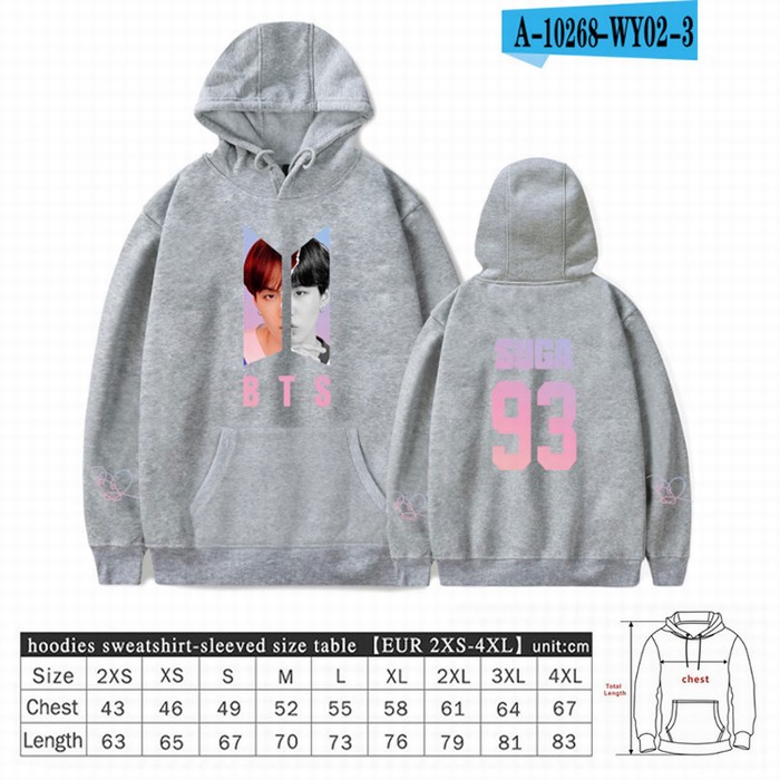 BTS-防弹少年团-B灰色长袖连帽套头加绒卫衣-XXS-XXXXL一共9个码-两件起批 提前三天预订
