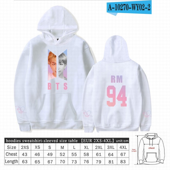 BTS-防弹少年团-D白色长袖连帽套头加绒卫衣-XXS-XXXXL一共9个码-两件起批 提前三天预订