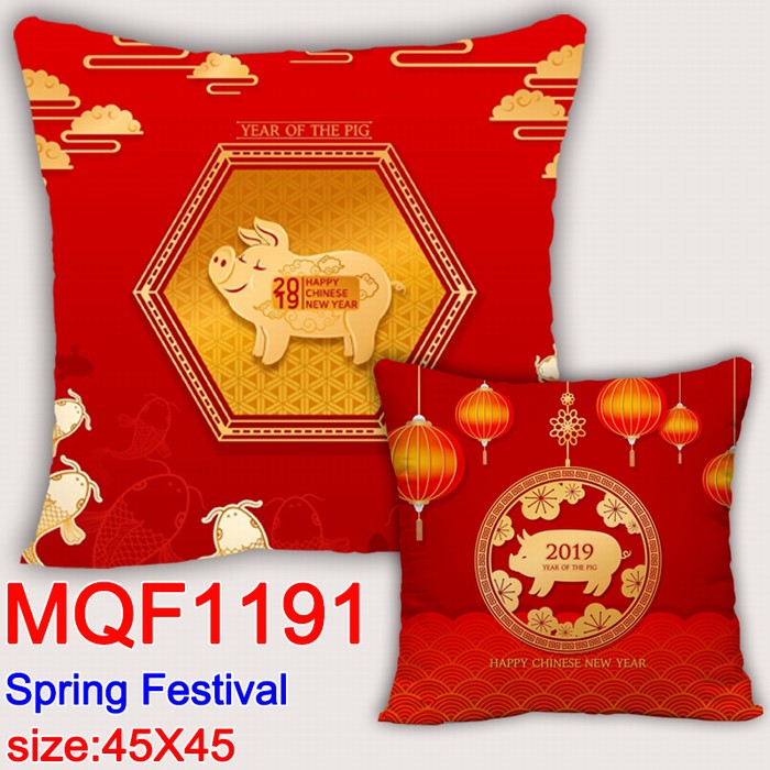 MQF1191 新年金猪 双面全彩抱枕靠垫 45X45CM
