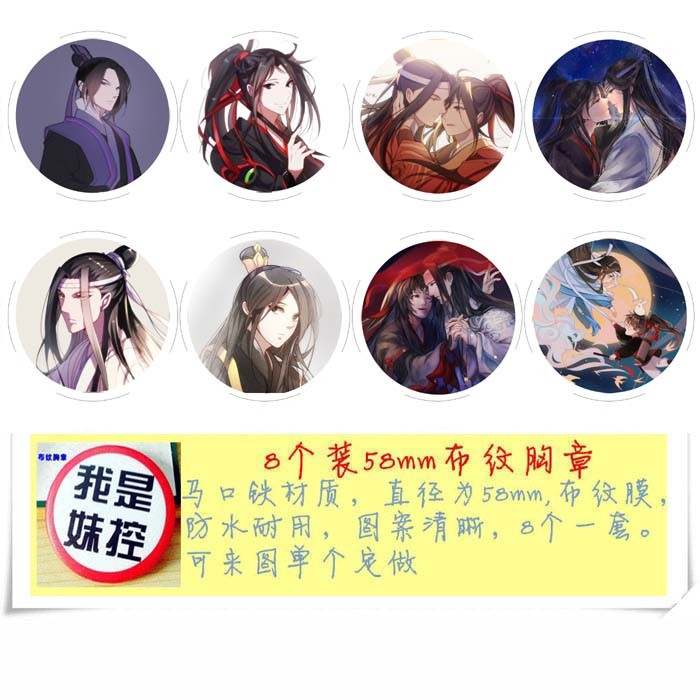 魔道祖师D款 8款一套圆形布纹胸针 58MM