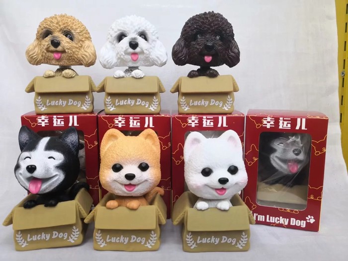 纸箱狗 球球摇头卡通盒装手办摆件摆件模型7X7X10.5 一箱96个