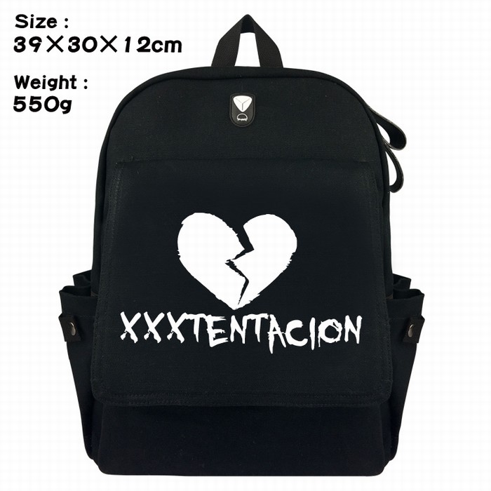 美国说唱歌手xxxtentacion-黑色心碎款帆布翻盖背包双肩包39X30X12CM