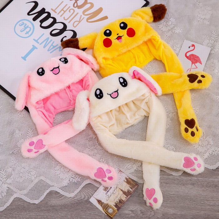 抖音同款 捏动耳朵可爱毛绒帽子 粉色款 不发光 3个起批