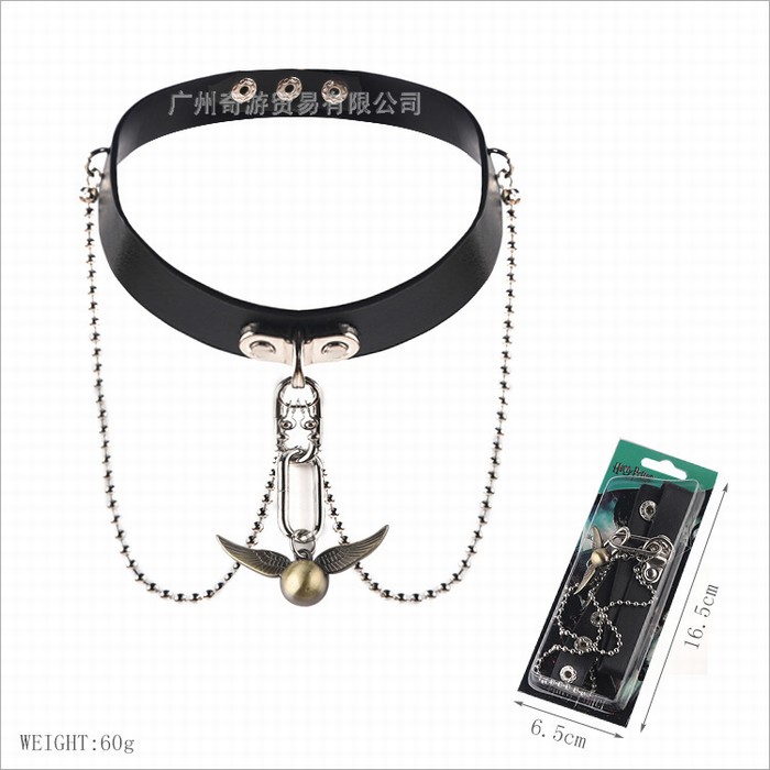 哈利波特 翅膀动漫皮颈圈项链 60G