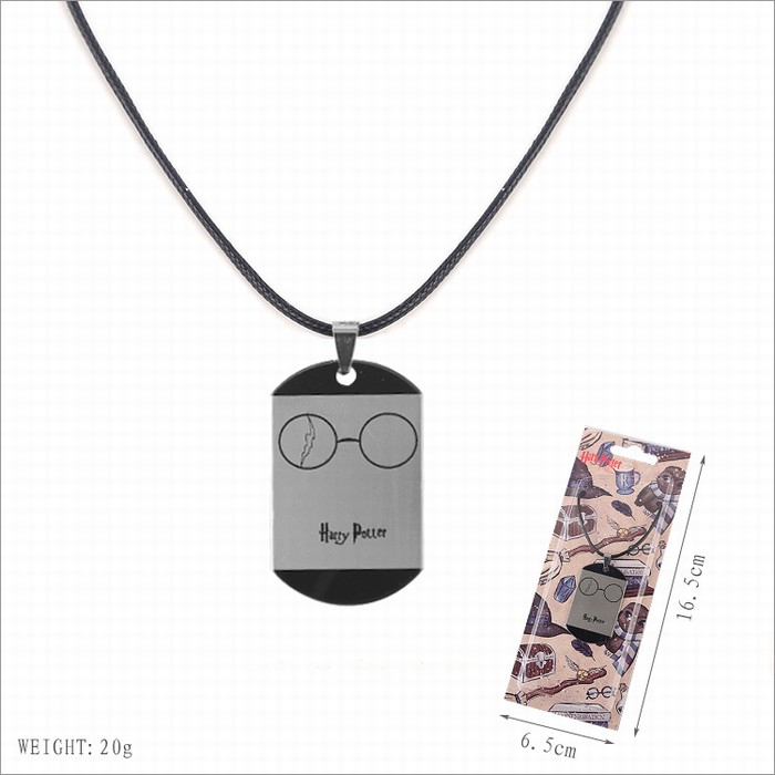 哈利波特 H款眼镜不锈钢军牌 黑色吊绳项链 5个起批