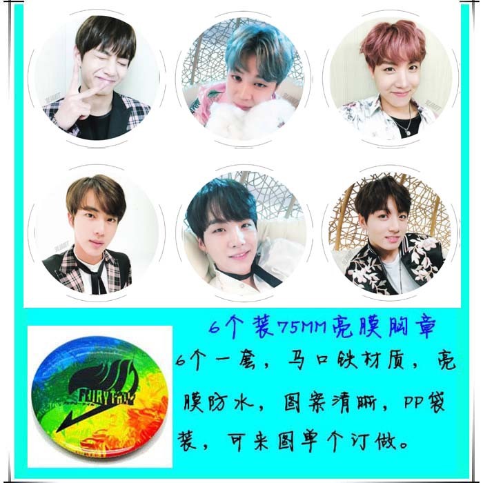 BTS防弹少年团-7 6个装75mm亮膜徽章胸针胸章