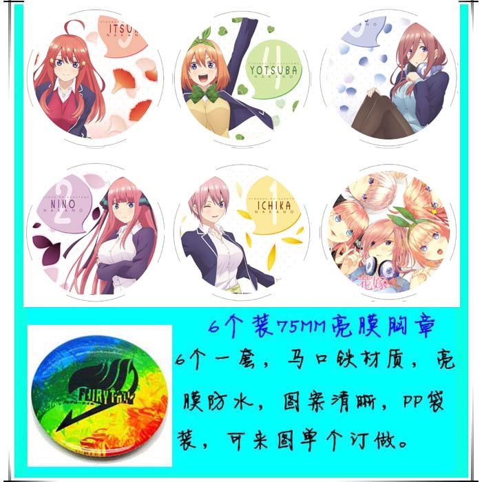 五等分的花嫁 A款6个装75mm亮膜徽章胸针胸章