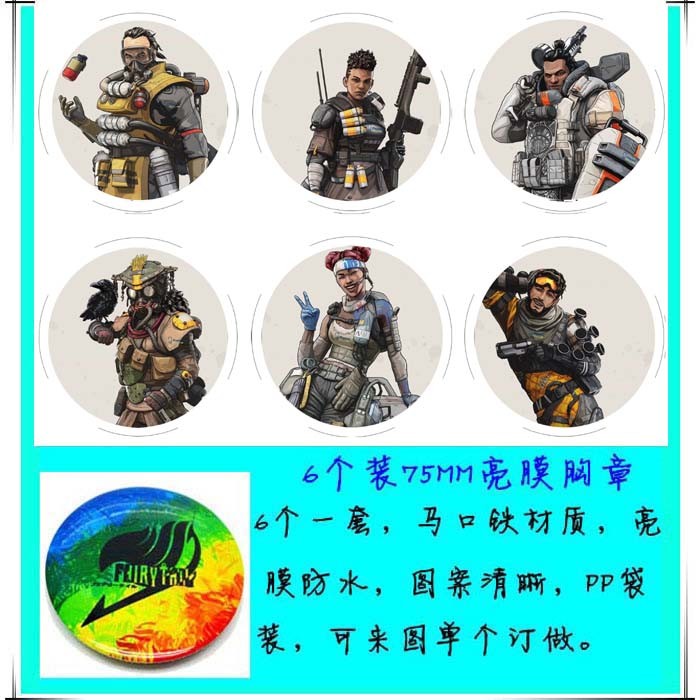 Apex-legends英雄 6个装75mm亮膜徽章胸针胸章