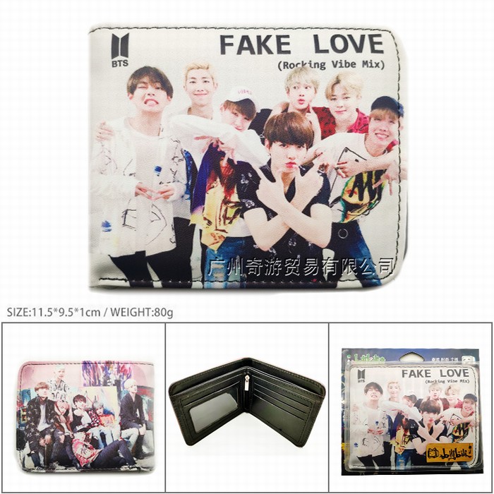 HK-318-BTS-防弹少年团-FAKE-LOVE短款彩图二折钱包11.5X9.5X1CM 80G