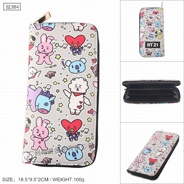 BTS防弹少年团BT21拉384PU皮革彩色拉链长钱包
