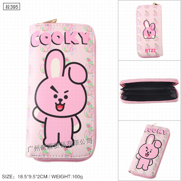 BTS防弹少年团BT21兔子拉395PU皮革彩色拉链长钱包