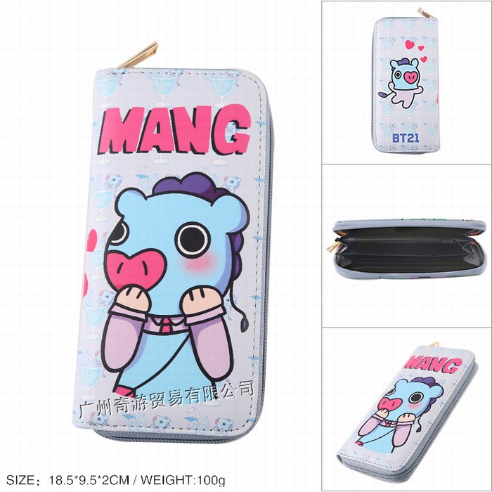 BTS防弹少年团BT21小马PU皮革彩色拉链长钱包