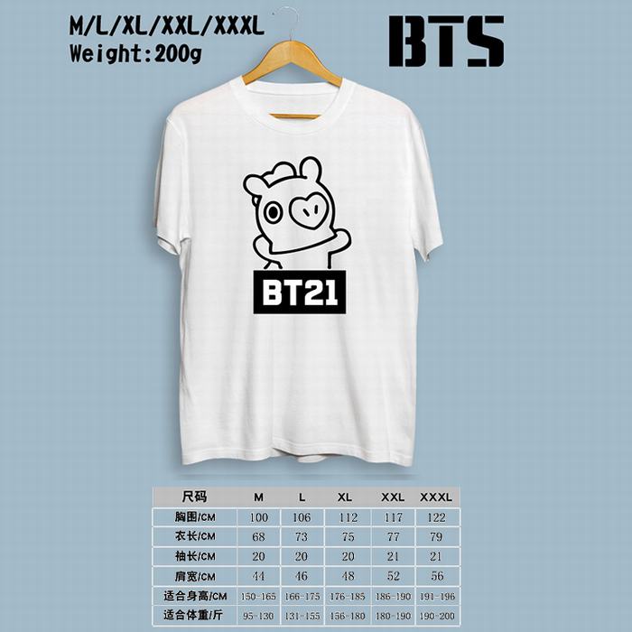 BTS防弹少年团BT21-小马白色印花圆领短袖T恤M-L-XL-XXL-XXXL
